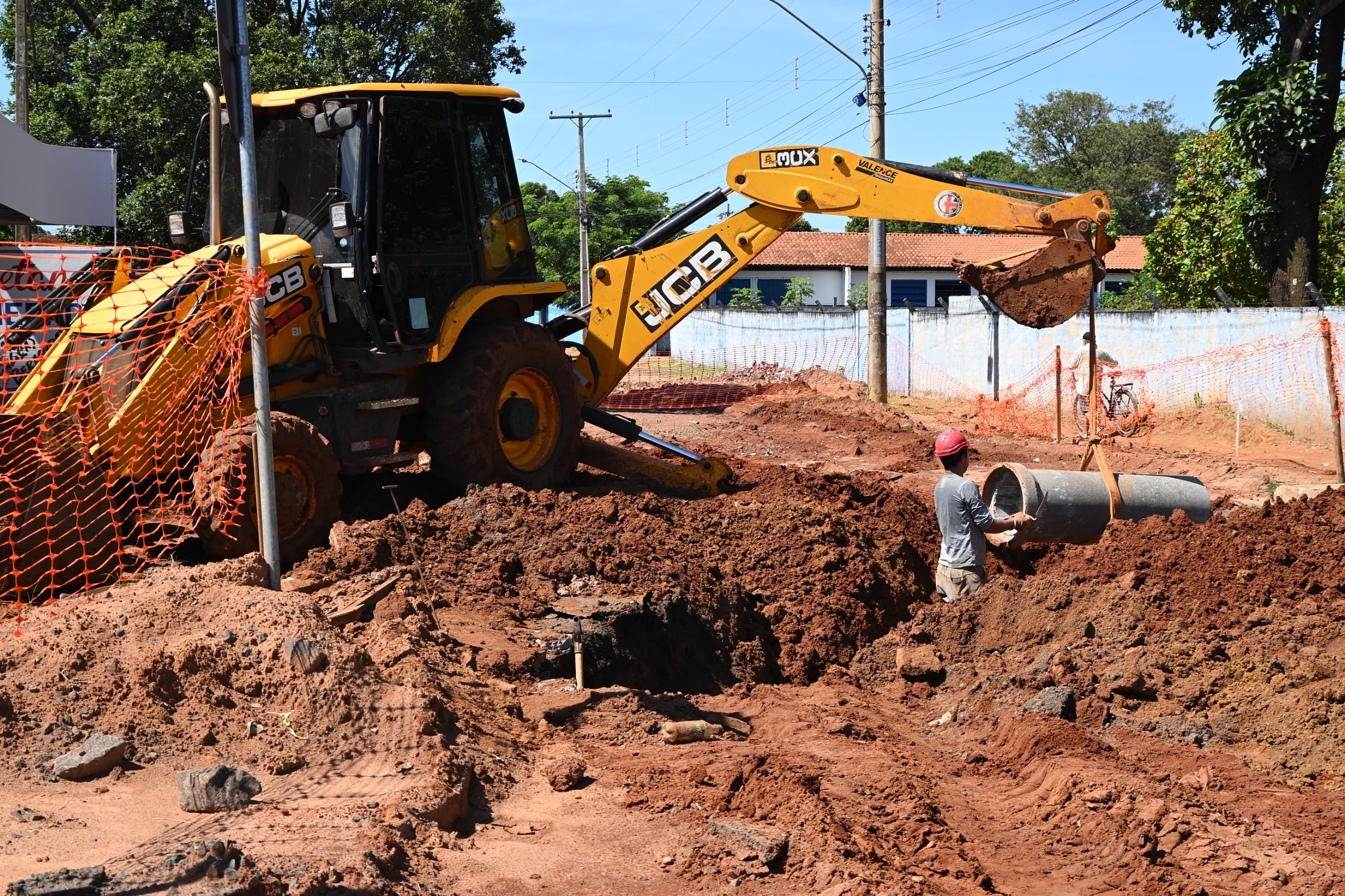 A intervenção na Avenida Três Barras integra o projeto de drenagem e pavimentação do Jardim Mansur/Jardim Auxiliadora, que já teve a pavimentação concluída e agora recebe a última etapa da rede de drenagem, além da construção de calçadas e serviços de acabamento.