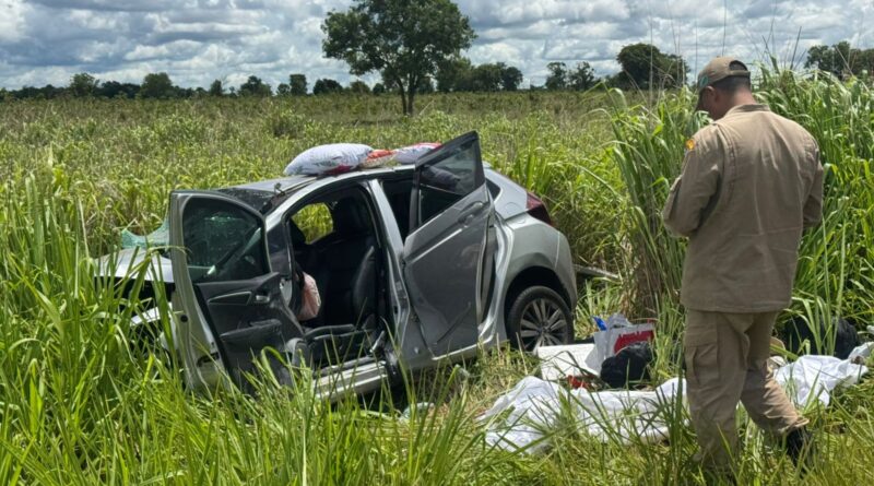 Motorista tenta desviar de buracos na MS-386 e acaba capotando carro com sua família