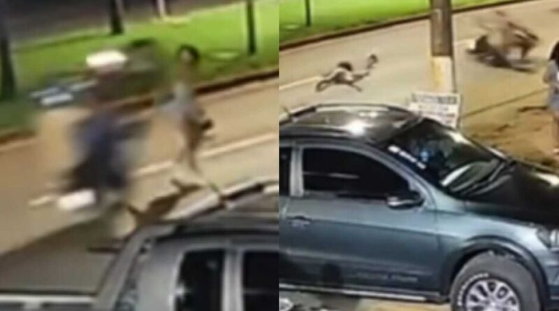 Vídeo mostra momento em que jovem é atropelada por piloto que empinava moto