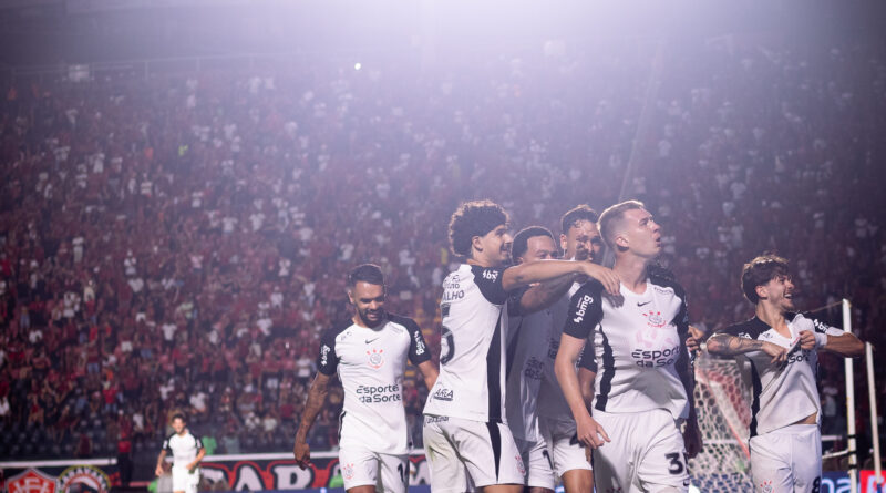 Com um jogador a menos, Corinthians marca no fim e bate o Vitória