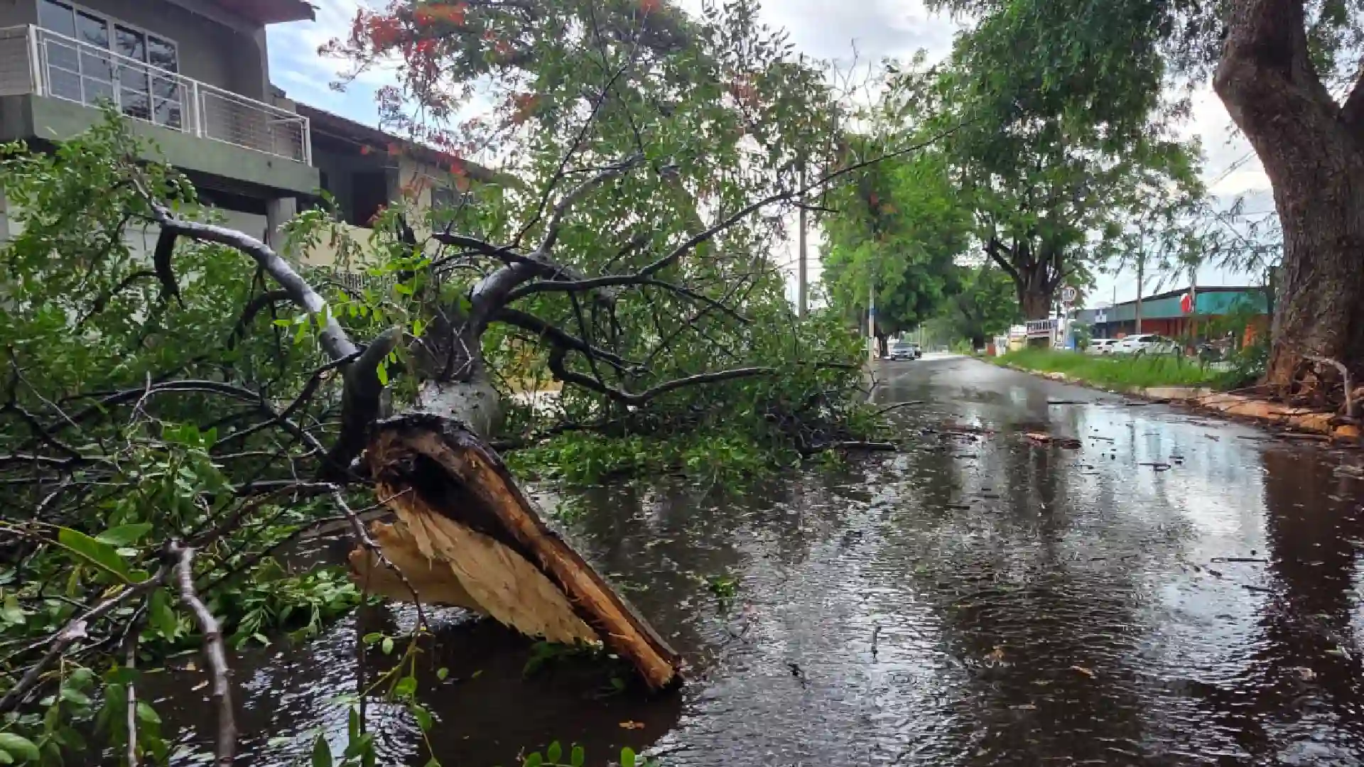 A forte ventania que antecedeu a chuva provocou a queda de árvores em Campo Grande. Na Avenida Manoel Joaquim de Moraes, entre as ruas Carajás e Clineu da Costa Morães, a árvore bloqueou completamente a via e deixou imóveis sem energia elétrica. Um comerciante local relatou preocupação com os prejuízos, já que a avenida concentra diversos estabelecimentos comerciais.