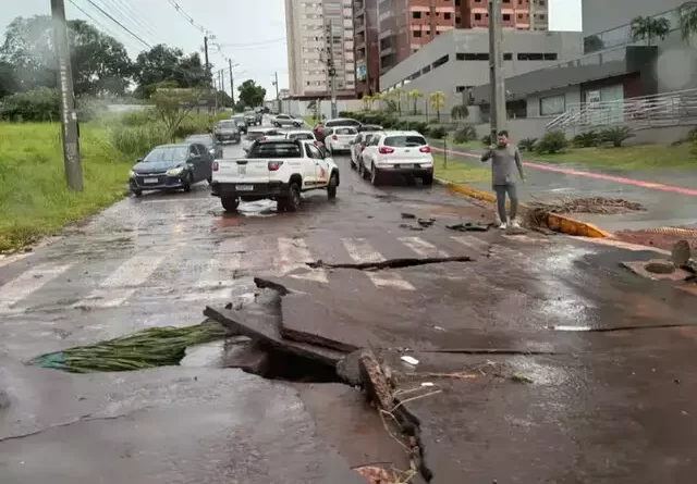 O temporal deixou um rastro de destruição em diferentes bairros, danificando postes de energia elétrica, derrubando árvores de grande porte e até mesmo arrancando asfalto de vias importantes, como a Rua Rachid Neder e a Avenida Joaquim Murtinho.