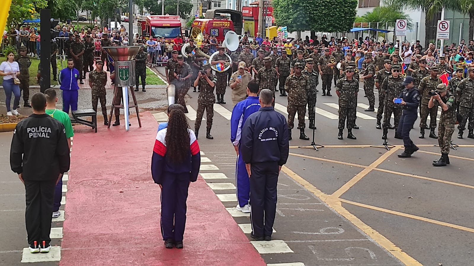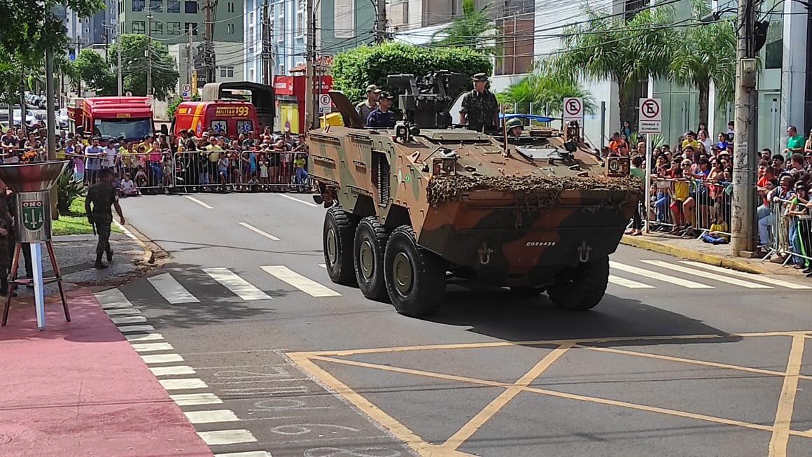 Em seguida, um tanque com integrantes das Forças Armadas, Polícia Militar e Corpo de Bombeiros Militar se posicionou em frente ao palanque de autoridades para que o governador desse a autorização oficial para a passagem da tropa. Chamou a atenção no palanque a ausência da prefeita Adriane Lopes (PP), que não compareceu ao evento por razões ainda não esclarecidas.