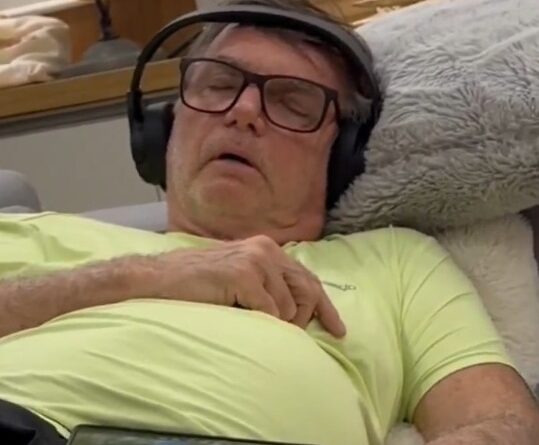 No vídeo publicado na rede social X, Bolsonaro aparece dormindo, usando um abafador de ruídos no ouvido, enquanto segura um tablete ligado no colo. Segundo o filho, o registro não seria divulgado, pois “expõe mais uma situação terrível dos reflexos da facada que levou de um antigo integrante do PSOL”, no caso, Adélio Bispo.