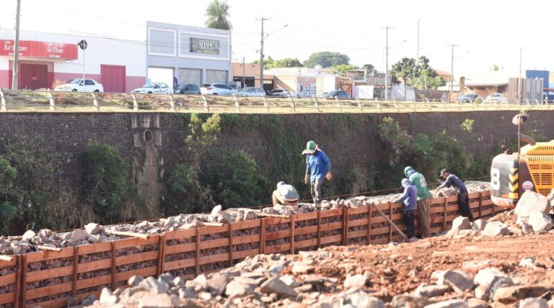 Para evitar erosões e enchentes o canal do córrego Anhanduí nesse trecho está sendo feito pelo sistema gabião, que consiste na montagem manual de pedras em gaiolas metálicas. O projeto contempla ainda o recapeamento da avenida, nova sinalização e guarda-corpo.