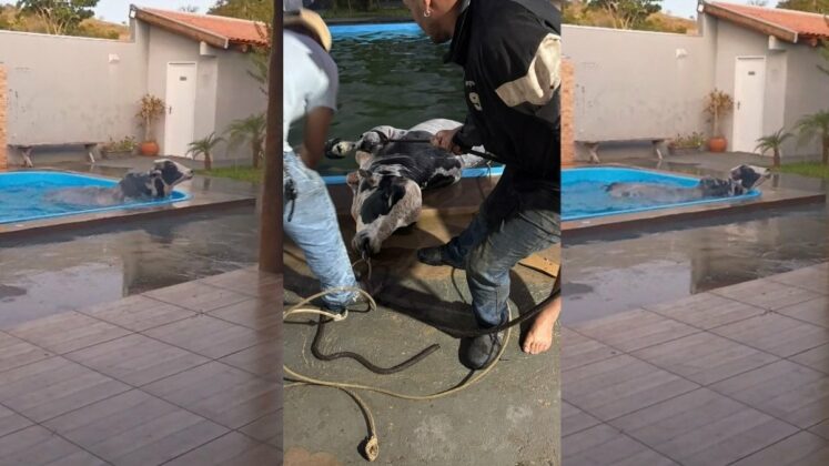 Vídeo: touro de uma tonelada cai em piscina e mobiliza vizinhos para resgate