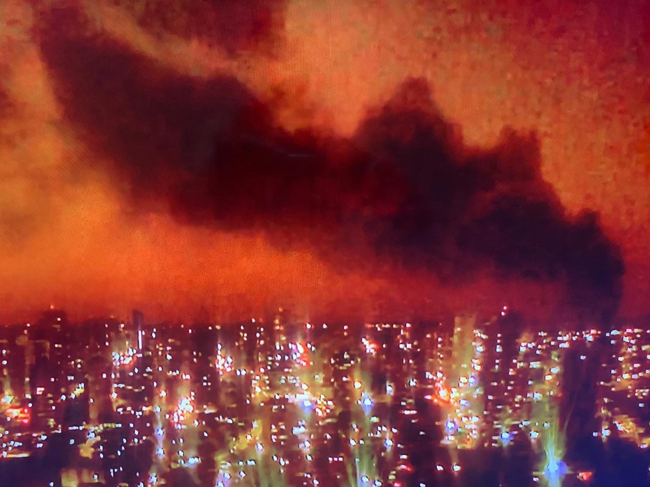 Um incêndio está destruindo uma loja de pneus em Campo Grande. O fogo começou durante a tarde dessa quinta-feira (20) e as chamas são de grandes proporções.