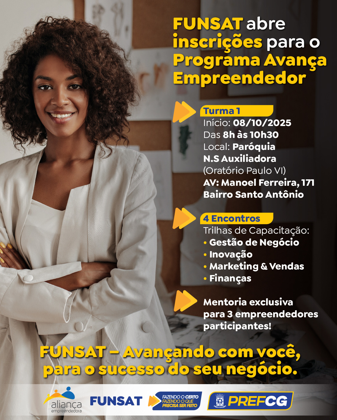 A Fundação Social do Trabalho (Funsat) está oferecendo uma mentoria exclusiva e gratuita para empreendedores, por meio do programa Avança Empreendedor. As inscrições, com vagas limitadas, já estão abertas neste mês de outubro.