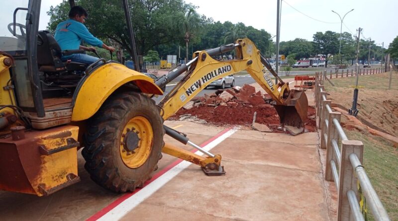Obra na calçada da Avenida Fillinto Muller em frente ao Lago do Amor será concluída em 30 dias