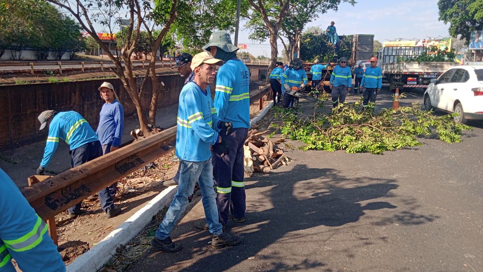 Muitas das ações têm caráter preventivo, especialmente com a proximidade do período de chuvas, como a desobstrução e reparos em bocas de lobo e a remoção de árvores que estão dentro do córrego Segredo, que corta a cidade no sentido Norte/Sul. As equipes estão fazendo a roçada, poda e limpeza da Avenida Ernesto Geisel e também o corte de árvores e retirada de resíduos, como galhos trazidos pelas enxurradas que estão no canal do córrego.