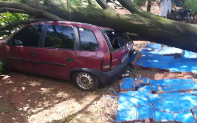 O carro ficou completamente destruído e, segundo o relato, tinha acabado de sair da oficina mecânica. Equipes do Corpo de Bombeiros foram acionadas para providenciar o corte dos galhos e do tronco da estrutura que ficou no local.