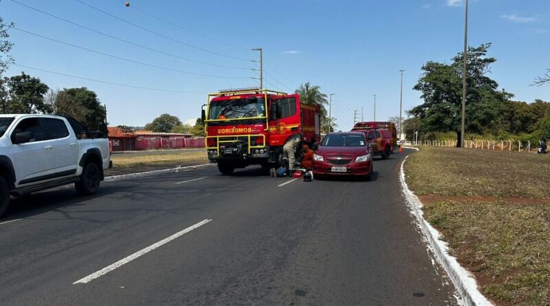 Bêbado e sem CNH, motociclista bate em carro e viatura dos bombeiros