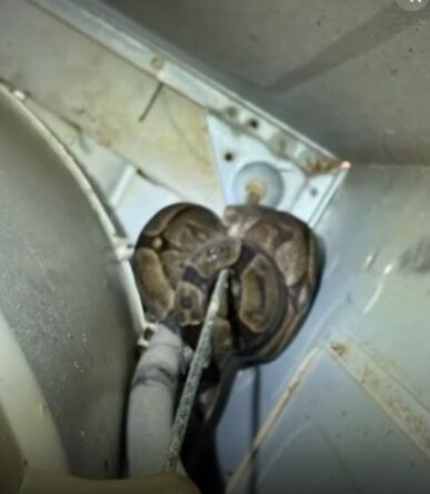Olha a cobrinha! Jiboia é resgatada pela PMA ao entrar em máquina de lavar roupas