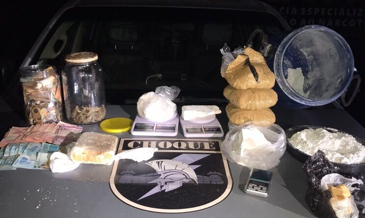 Com o flagrante, a equipe prosseguiu com diligências e realizou uma busca no interior da casa do suspeito. Lá, foram encontrados 1,350 quilo de maconha e 3,490 quilos de cocaína, esta última acondicionada em um tambor na cozinha. Além das drogas, os policiais apreenderam quatro balanças de precisão e aproximadamente R$ 9 mil em dinheiro, valor que, segundo o próprio suspeito, era proveniente da venda de drogas.