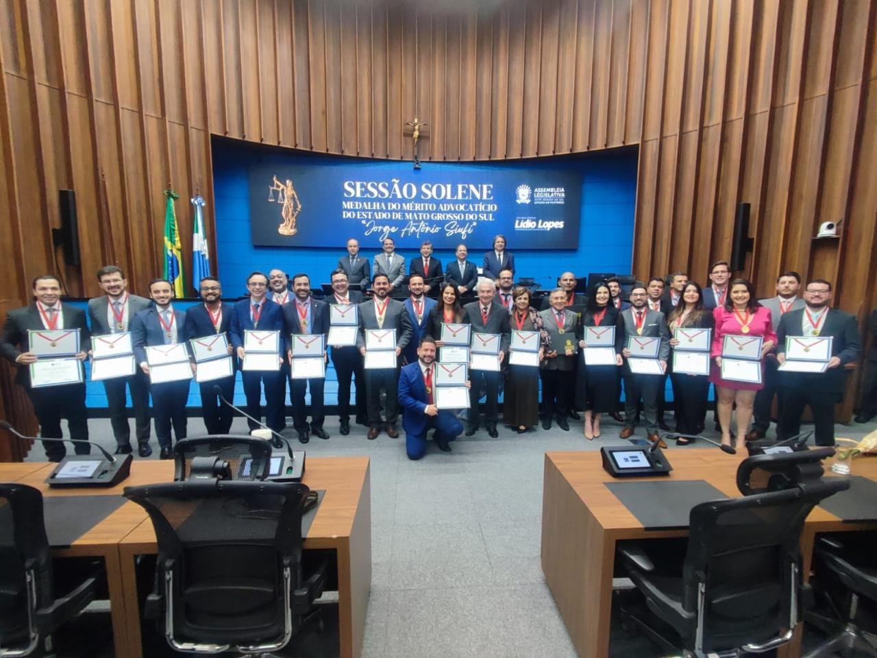Em um mundo onde as leis moldam o tecido da sociedade, a profissão jurídica se revela vital para coletividade. Os advogados desempenham um papel na defesa da lei, na proteção dos direitos dos indivíduos, na resolução de disputas e na garantia de que a justiça seja feita. Com a intenção de prestar homenagem a alta qualidade da advocacia sul-mato-grossense, a Assembleia Legislativa de Mato Grosso do Sul (ALEMS) realizou na noite desta quinta-feira (7), sessão solene de outorga da Medalha do Mérito Jorge Antônio Siufi.
