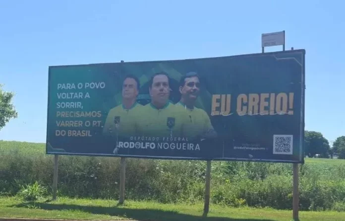 O outdoor instalado em Itaporã traz a imagem de Rodolfo Nogueira ao lado do ex-presidente Jair Bolsonaro e do senador Flávio Bolsonaro, acompanhada da frase: “Para o povo voltar a sorrir, precisamos varrer o PT do Brasil”, além da expressão “Eu creio”. A peça é a mesma que havia sido retirada anteriormente de uma via de grande circulação em Dourados, na saída para Maracaju.