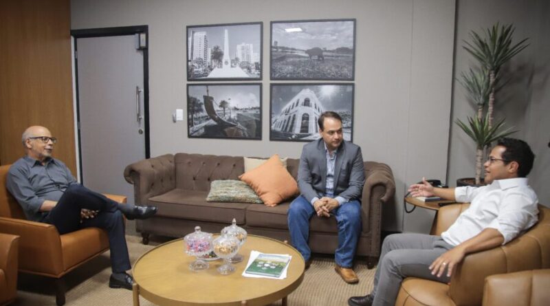 O vereador Epaminondas Neto, o Papy, presidente da Câmara Municipal de Campo Grande, recebeu o presidente da Associação Comercial e Industrial, Renato Paniago, e o superintendente da instituição, Ulysses Conceição Filho, para discutir alterações em legislações para buscar novos investimentos para a Capital e facilidades para tornar o comércio da cidade mais atrativo aos consumidores.